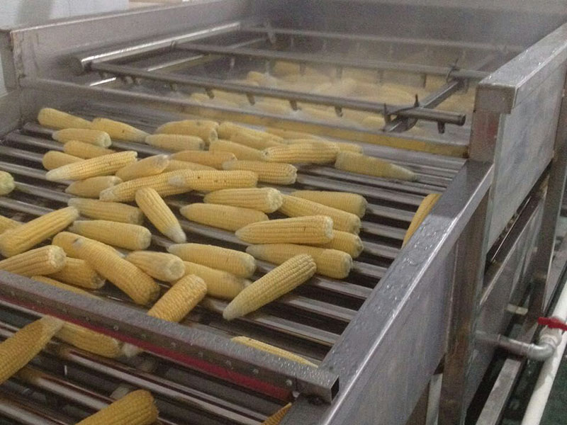 該機特點: 該流水線是由輸送區、清洗區、瀝水區及循環水處理區等組成。物料在清洗過程中360度旋轉,多方位無死角清洗,解決了傳統清洗機設備保潔度難、次生污染嚴重的問題?! ≡摿魉€主要用于鮮食玉米